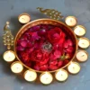 Gold- Metal Tealight Candle Holder Urli for Home and Pooja Room Decorations Item|Floating Flowers Urli tealight Holder for Home & Office,Table Décor (Size-16x16x2.5inch)